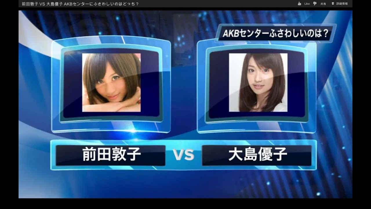 2012年6月に行われた第4回AKB総選挙で実現するはずだった前田敦子VS大島優子の4度目の対決!しかし、前田敦子さんがAKBの卒業を発表したため実現しませんでした。不動のセンターとしてAKB48センターに君臨し続けて来た前田敦子さんがAKBを卒業してからはや4ヶ月、渋谷という舞台でこの対決を実現しました。