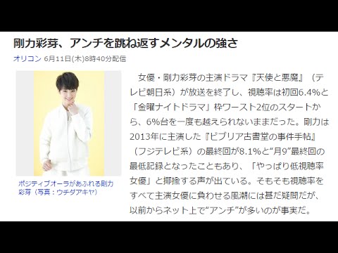 女優・剛力彩芽の主演ドラマ『天使と悪魔』(テレビ朝日系)が放送を終了し、視聴率は初回6.4%と「金曜ナイトドラマ」枠ワースト2位のスタートから、6%台を一度も越えられないままだった。剛力は2013年に主演した『ビブリア古書堂の事件手帖』(フジテレビ系)の最終回が8.1%と“月9”最終回の最低記録となったこともあり、「やっぱり低視聴率女優」と揶揄する声が出ている。そもそも視聴率をすべて主演女優に負わせる風潮には甚だ疑問だが、以前からネット上で“アンチ”が多いのが事実だ。