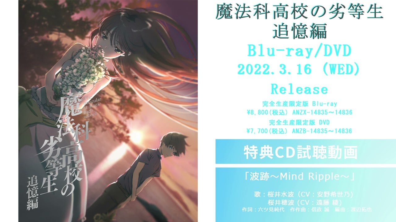 3月16日(水)発売のTVアニメ「魔法科高校の劣等生 追憶編」Blu-ray&DVDに収録されるキャラクターソングの試聴動画を解禁!