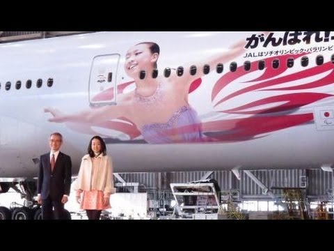 ソチ冬季五輪日本代表入りを決めたフィギュアスケートの浅田真央選手が25日、羽田空港で行われた特別塗装機お披露目会に出席。この日は、自身が描かれた特別塗装機(ボーイング777-300型機)がお披露目。浅田選手は「想像してなかったのでうれしい!」と、巨大な”クリスマスプレゼント”に目を丸くさせていた。