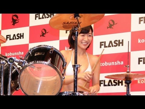 階戸さんは、上智大卒の”才女”で、特技の剣道は初段という腕前。さらに、高校生の時に組んでいたバンドでドラムを担当していたといい、ステージ上で水着姿でドラムパフォーマンスを披露。その出来を「50%ぐらい」と悔しがるも、「水着でドラムをたたくのは初めて。楽しかった」と笑顔を見せた。また、永井さんはY字バランスを披露するなど、”体の柔らかさ”をアピールした。発表会には、葉加瀬マイさんら「ミスFLASH2012」も駆けつけ、新たな「ミスFLASH」たちを祝福した。(毎日新聞デジタル)