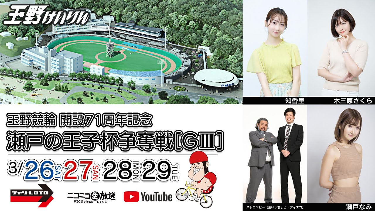 そんな新玉野競輪からチャリチャン@チャリロトにて玉野競輪 開設71周年記念 瀬戸の王子杯争奪戦[GⅢ]を現地より公開放送でお届けします。