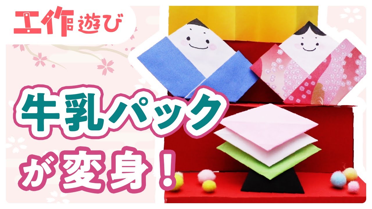 牛乳パックのひな壇に子どもが作ったおひな様を飾るのはいかがでしょうか?