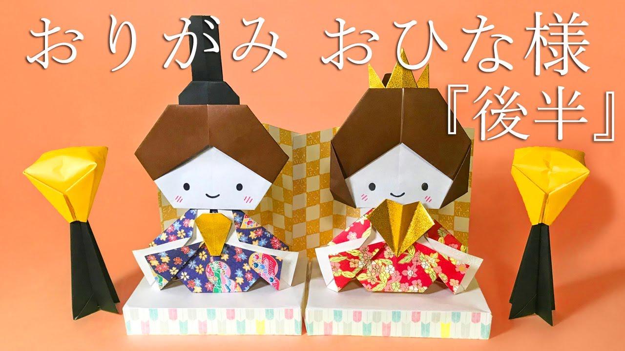 [Hinamatsuri Origami] This is the second half of how to fold a cute Hinamatsuri that is perfect for decorating the Hinamatsuri. I will explain as easily as possible with audio, subtitles and fold lines.