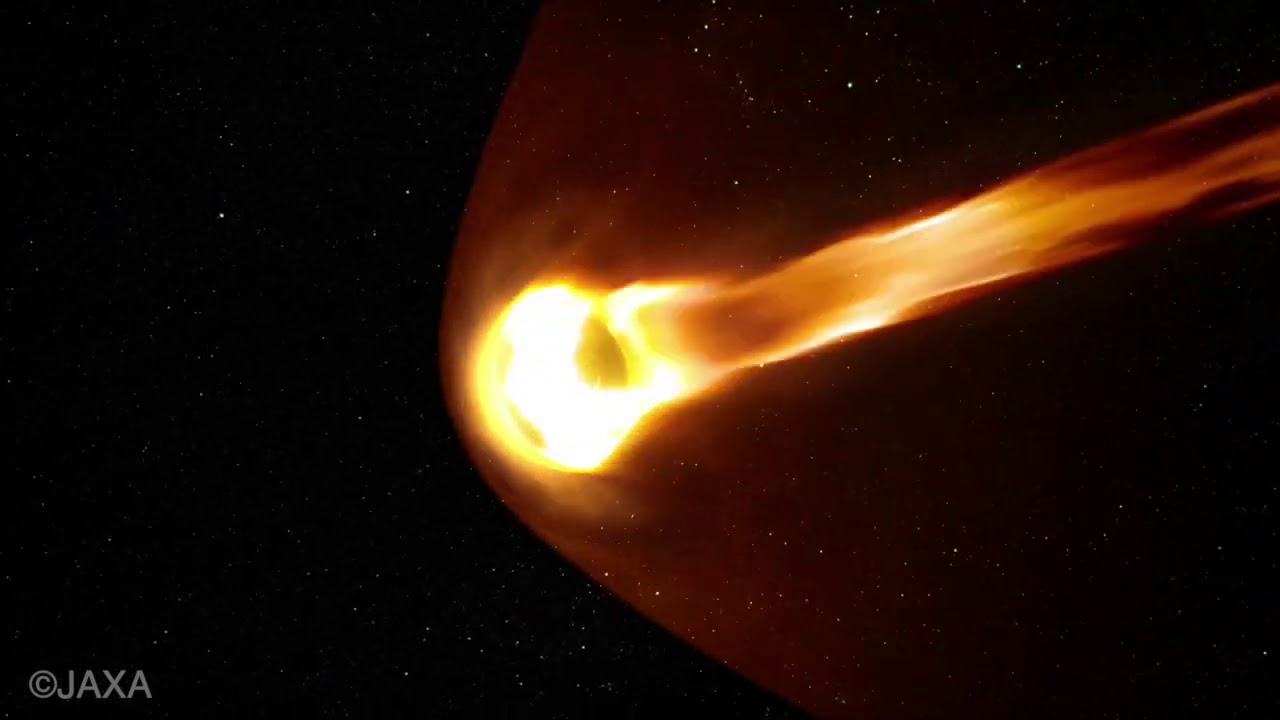 2020年12月6日に地球帰還を予定しているJAXAの小惑星探査機「はやぶさ2」が地球に向けた軌道制御を行う様子、ならびに再突入カプセルを地球に向けて分離する際の様子をCGでイメージ化したものとなります #はやぶさ2JAXA劇場版 HAYABUSA2~REBORN小惑星探査機