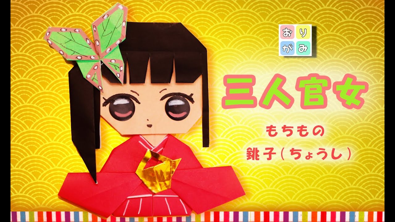 折り紙で栗花落カナヲの三人官女をつくります。