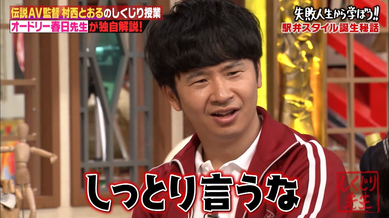 今回はオードリー春日が特別講師として初登壇!話題沸騰中のドラマ「全裸監督」で注目されているAV界のレジェント・村西とおる監督を題材に熱血授業します。 今回、番組は村西監督本人に直接取材。すると村西監督は、新しいことを生み出そうと、誰もやってないことに挑戦し続けた結果、前科7犯、借金50憶円、懲役370年求刑としくじりまくった過去を赤裸々告白。その壮絶エピソードからオードリー春日先生が人生の教訓を紐解きます。さらに村西監督からモノ作りに励むすべての人へ熱いメッセージも!お楽しみに!