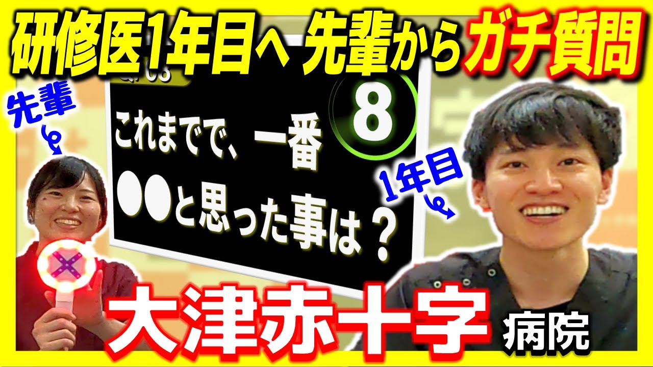 先輩からの11の質問に、研修医1年目が8秒で答えます。第4回は、内科志望D先生のチャレンジ!事前予告なしで研修医のホンネを聞き出します。(#大津赤十字 #研修医 #採用 説明会)