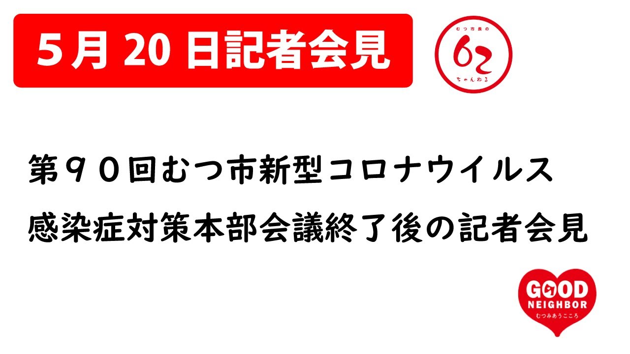 5月20日(金)19:00開催予定の第90回むつ市新型コロナウイルス感染症対策本部会議終了後のむつ市記者会見の様子をライブ配信します。