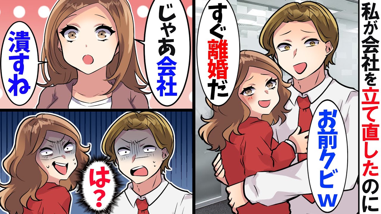 倒産寸前の会社を嫁が立て直したら、夫と新入社員「用済みだから離婚するw」妻「じゃあ会社つぶすわね」→結果…w【スカッとする話】
