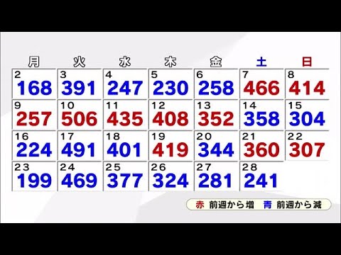 新規感染者数は先週の土曜日と比べて119人少なく6日連続で前の週の同じ曜日を下回りました。