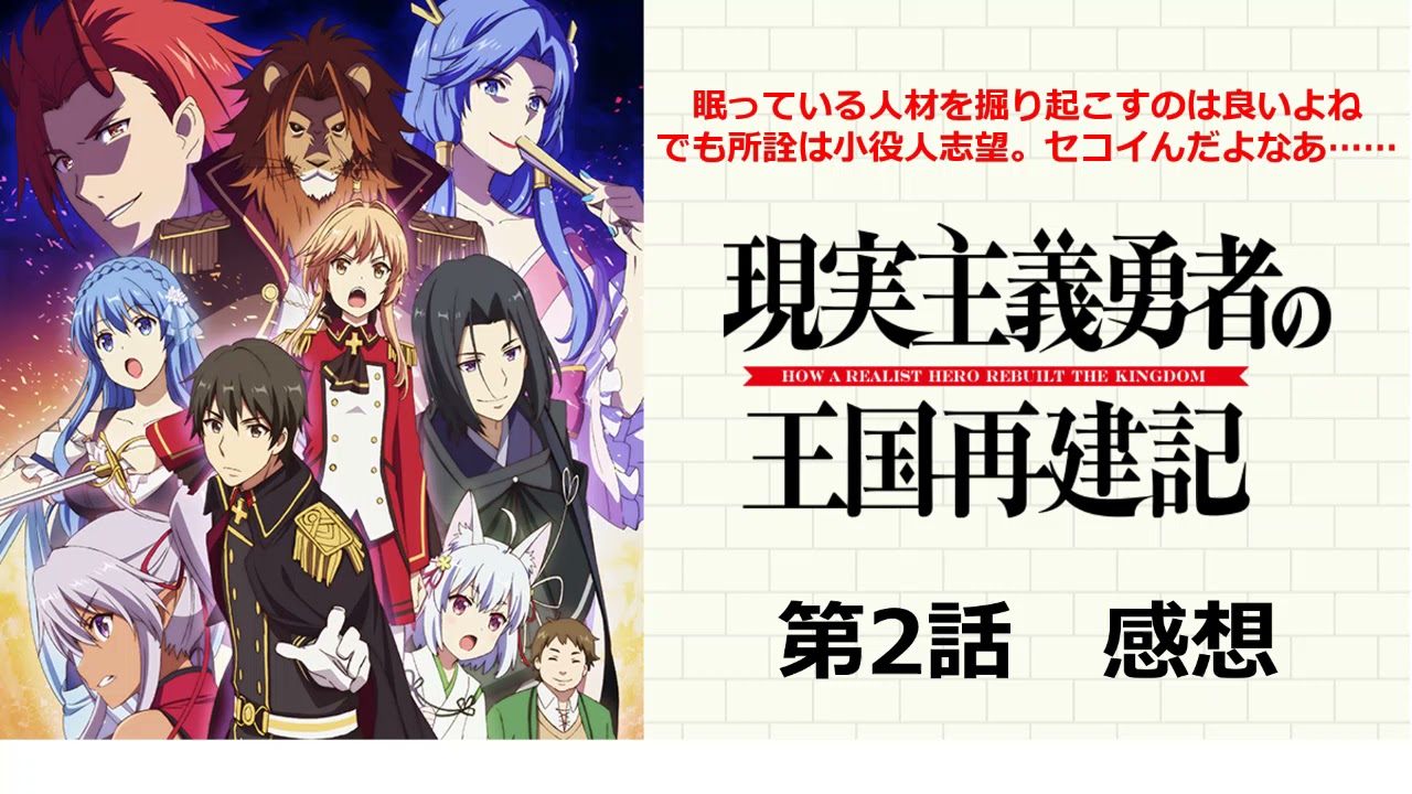 「現実主義勇者の王国再建記」の第2話を観ました。その感想です。▼Twitter Tweets by yass_komori▼ブログ(コモリヤスハルの日記帳) https://www.moelogue.com/ 現国現実主義勇者の王国再建記現実主義勇者の王国再建記 第二部