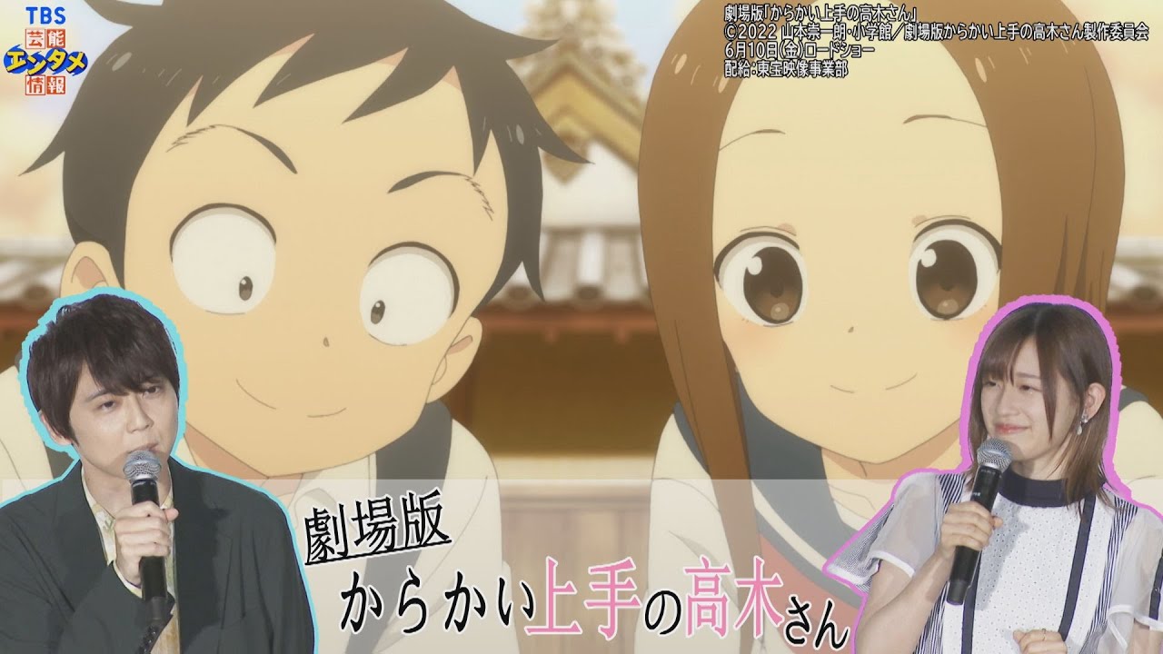 コミックスのシリーズ累計1100万部を突破した山本崇一朗原作の青春コメディ「からかい上手の高木さん」。中学3年生になった高木さんと西片の、中学最後の夏休みを描いた「劇場版 からかい上手の高木さん」の完成披露上映会が行われ、声優の高橋李依さん、梶裕貴さん、主題歌を担当した大原ゆい子さん、監督の赤城博昭さんが舞台挨拶を行いました。高橋さん、梶さん、大原さんは3期にわたるテレビアニメシリーズを経て、製作された劇場版への想いを語りました。