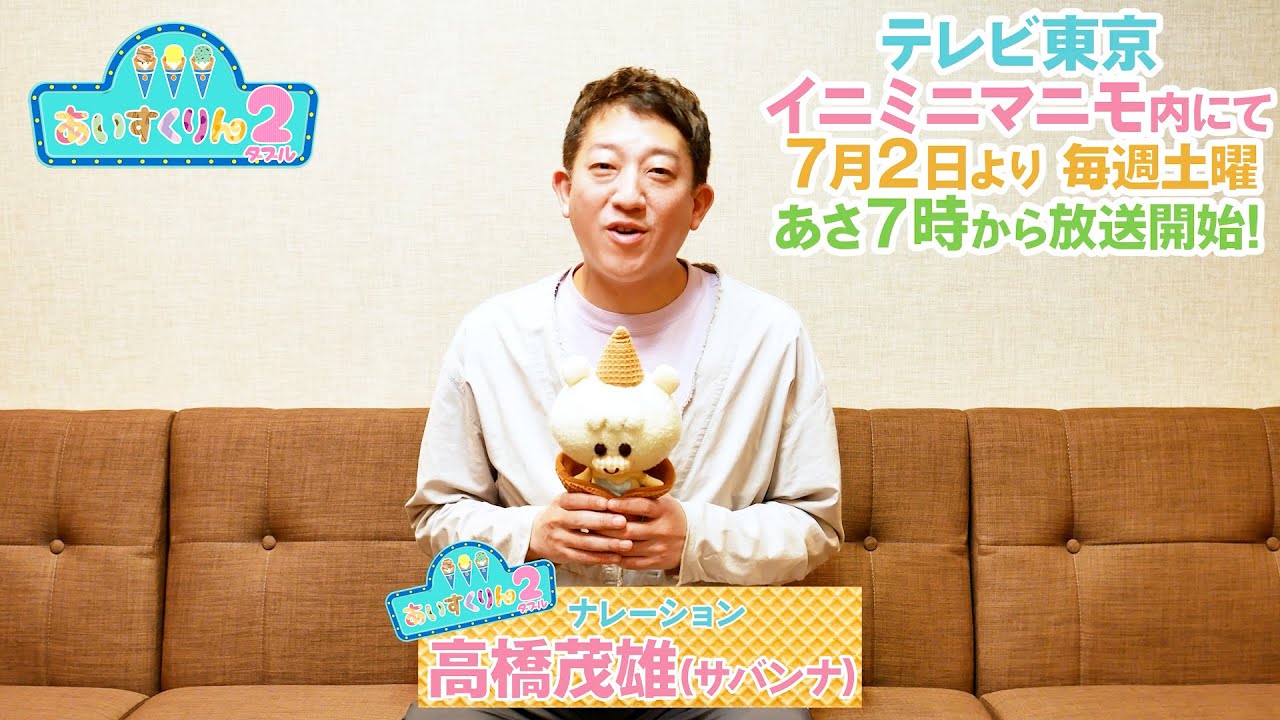 賑やかでカラフルな『iiiあいすくりん2』の物語の中で、前作に続きナレーションを担当するのはサバンナ・高橋茂雄さん。収録を終えたばかりの高橋さんからおともだちのみんなにコメント動画も届きました。