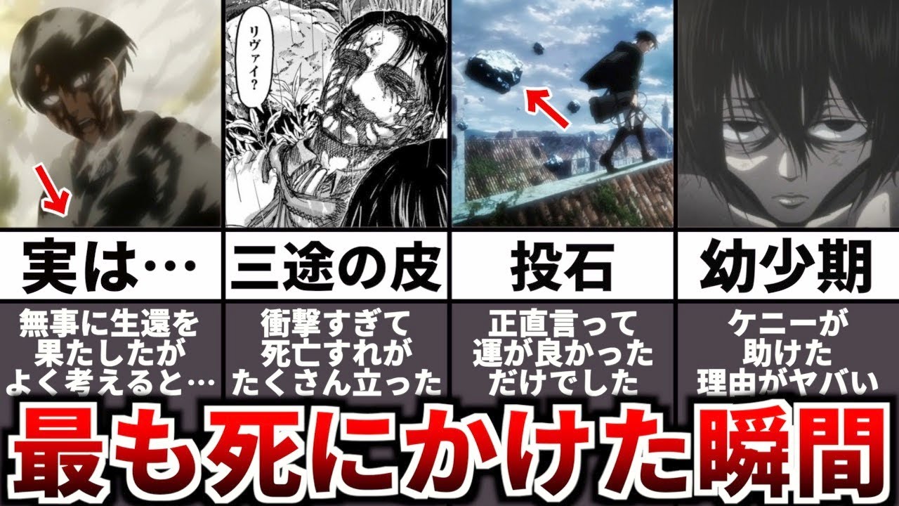 今回は人類最強にして調査兵団兵士長のリヴァイが最も死にかけた瞬間をランキング形式で紹介していきました!みなさんのランキングもぜひ見てみたいので教えていただけると嬉しいです! 参考資料&引用 ©諫山創・講談社/「進撃の巨人」The Final Season製作委員会 ※動画内で使用している全ての画像は上記の作品からの引用させていただいております。#進撃の巨人 #ファイナルシーズン #The Final Season Part2 #考察 #進撃の巨人The Final Seasonエレンファイナルシーズンライナーリヴァイ巨人考察解説進撃の巨人 The Final Season Part 2