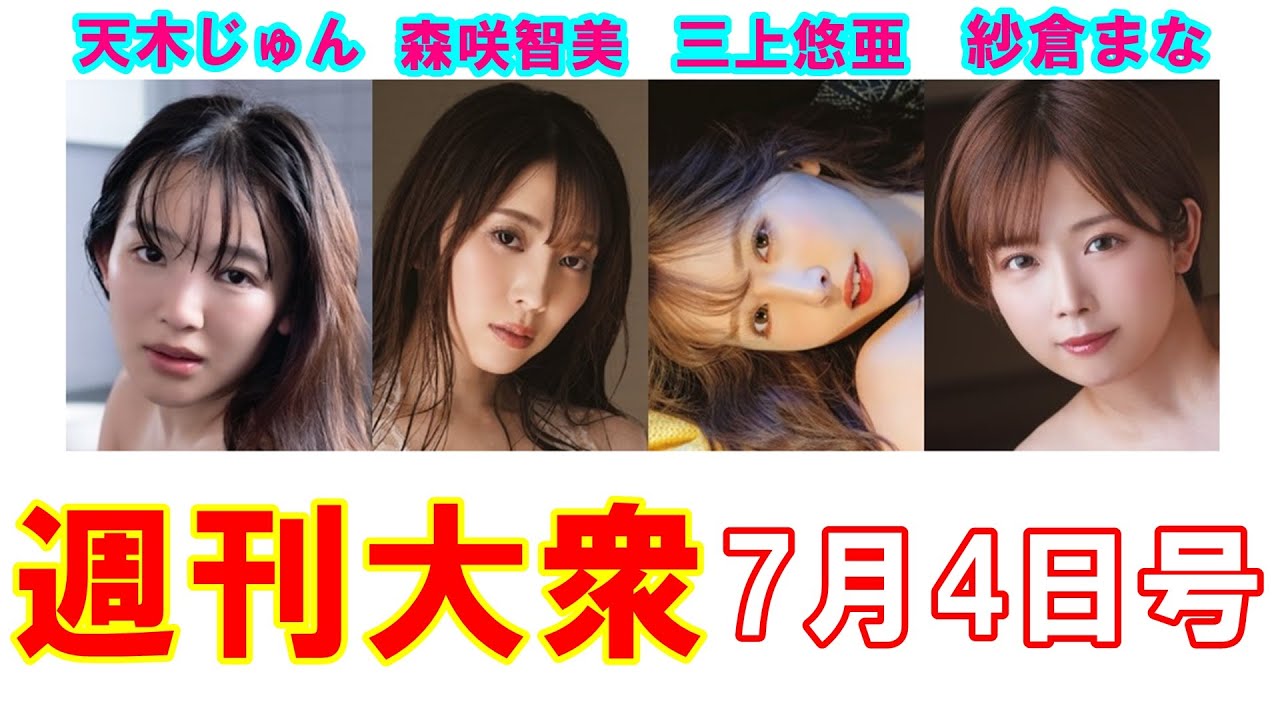 4000号記念スペシャル付録付き! 人気グラビアアイドルとセクシー女優が豪華に競演しております。 週刊大衆最新号⇒https://amzn.to/3HKkKWS チャンネル登録はコチラ⇒https://bit.ly/3ficb9k #週刊大衆 #大衆セクシー #天木じゅん#森咲智美 #三上悠亜#紗倉まな UC_mNNfAp1SXaVokunRN6zXgセクシー三上悠亜双葉社天木じゅん日刊大衆森咲智美紗倉まな週刊大衆