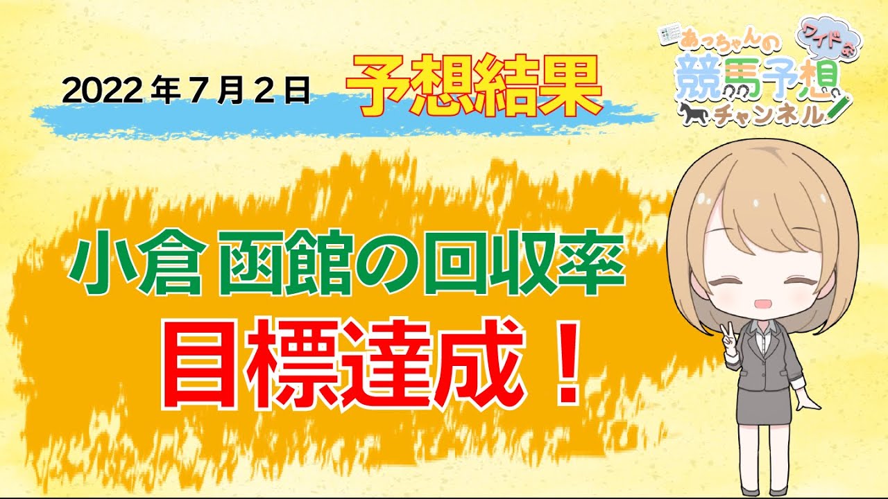 2022年7月2日に開催された、福島・小倉・函館競馬場全レースを予想した結果の的中率、回収率をお知らせしています。