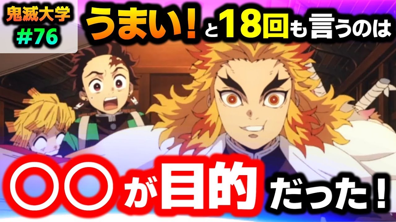 動画の冒頭では、煉獄さんが「うまい!」と言い続けた理由、その目的について語っております!
