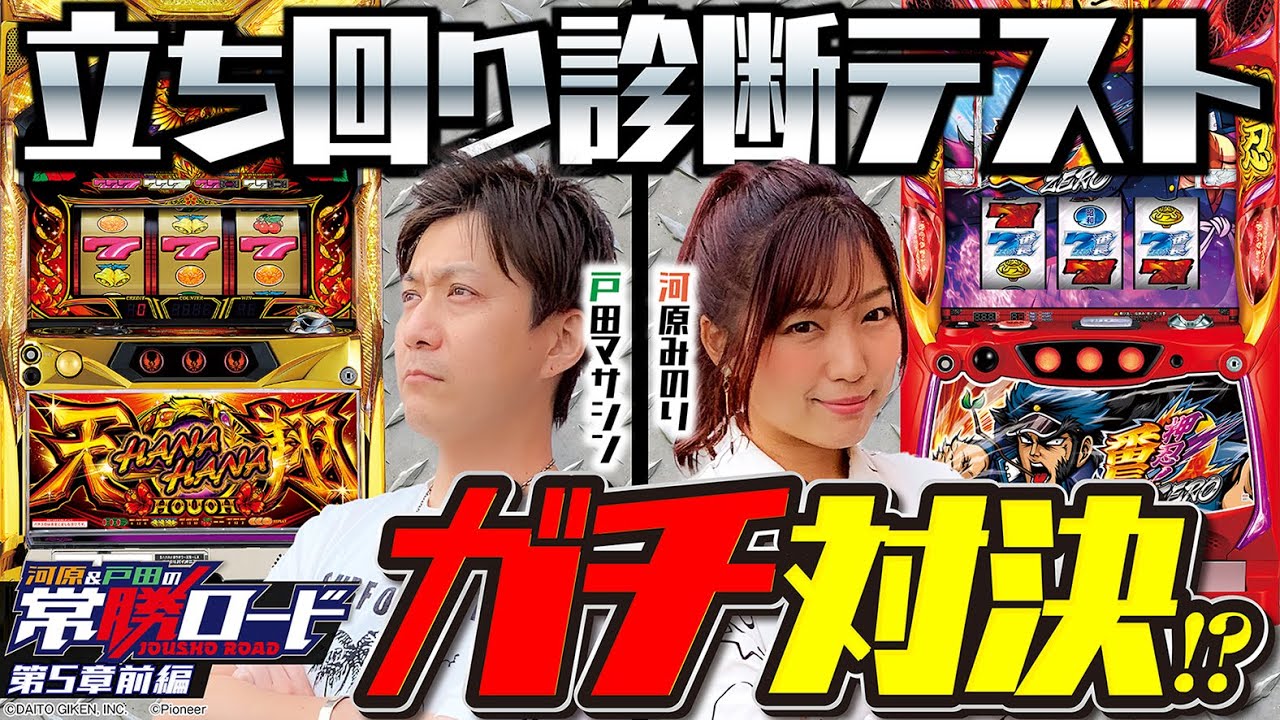 今回は、河原がどれだけ成長できたかを測るため「立ち回り診断テスト」を実施。さらに戸田との出玉バトルが勃発!河原が勝てば戸田の奢りで飲み放題!?
