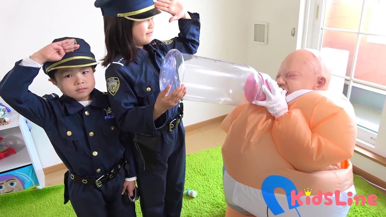 お巡りさんになりきった2人は、初パトロールに挑戦!!泣いている はらぺこバブちゃんにを警察らしく対処できるかな??