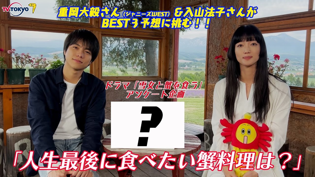 【ドラマ概要】重岡大毅(ジャニーズWEST)主演!ヤングマガジンおよびWEBで連載され、大人気を博した、新進気鋭の漫画家・Gino0808による「雪女と蟹を食う」をドラマ化。冤罪により人生が狂い自殺を決意した男と、時に雪女を彷彿とさせるような謎多きセレブ妻による奇妙な二人旅を描く、文学的でサスペンスフルなラブストーリー。