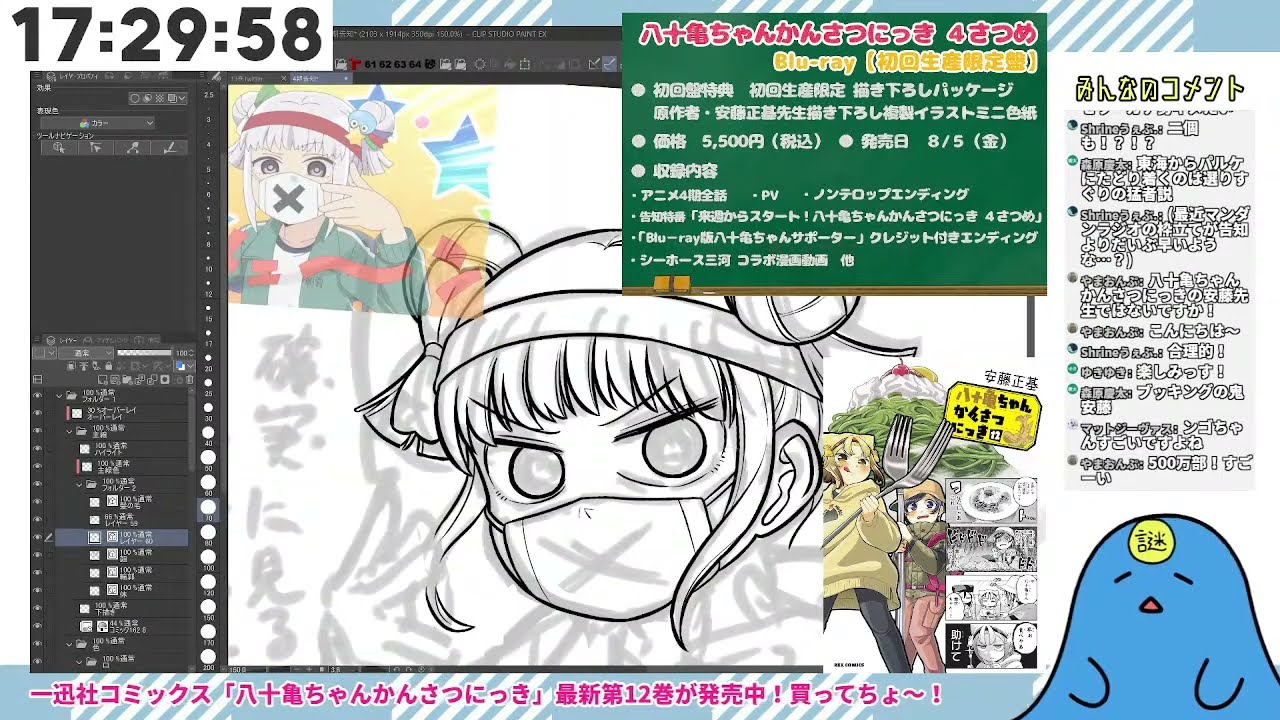 自分の漫画「八十亀ちゃんかんさつにっき」の作業配信です