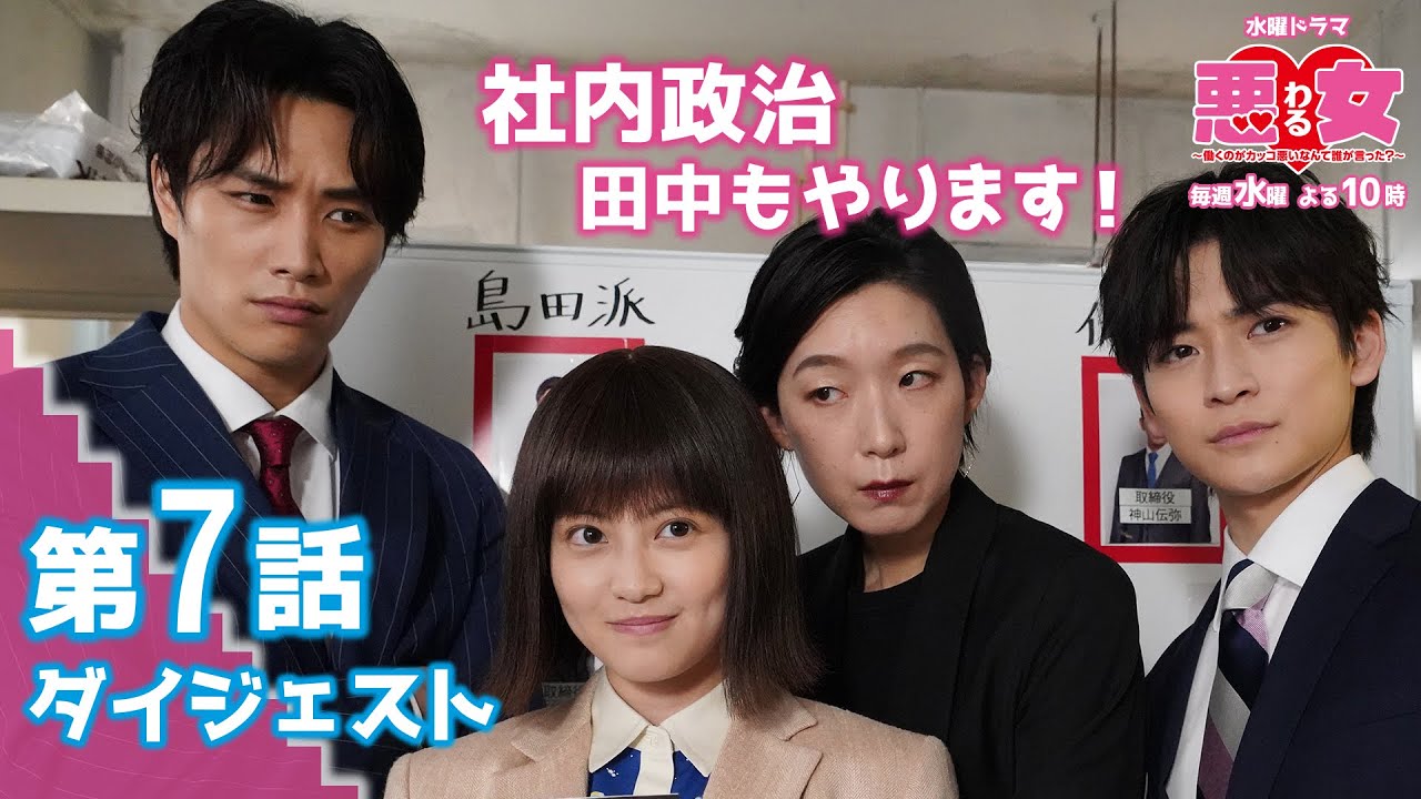 「オウミ」の社長が倒れ、専務の島田(小木茂光)と社長の息子・伝弥(野間口徹)の間で、次期社長を巡る争いが勃発した。実績も人望もある島田が優勢だとそれぞれが保身に走る中、麻理鈴(今田美桜)は伝弥が主導する「未来プロジェクト」に参加。しかし、プロジェクトに残ったのは、島田派のスパイとしてプロジェクトに潜入した根津(北乃きい)と麻理鈴だけで…。社長選挙の票集めのために、麻理鈴が企画したBBQも大失敗に終わってしまう。そんな中、「未来プロジェクト」で扱うべき本当のビジネスに気付いた伝弥は、これまでになく真剣に仕事に取り組み始める。一方、峰岸(江口のりこ)は、島田が新社長になれば女性管理職の人数を5割に増やす「JK5」計画が一気に進むと期待するが、男性取締役の反発を恐れた島田は「JK5」計画を白紙に戻すと宣言し…。次期社長を巡る“社内政治”を初体験することになった麻理鈴。彼女は、「悪女」になりきって社内の荒波を泳ぎ切ることができるのか?