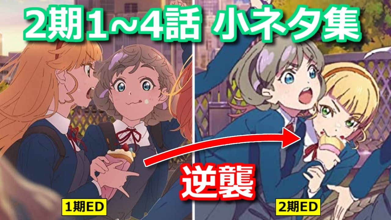 2期ED曲のジャケット絵は1期ED曲と同様の構図になっていて、すみれが反撃してるのが面白い。実は1期と2期で練習着が微妙に変わっている。四季が読んでる本は四季の行動と直結してる。などなど、気づきづらい小ネタを10個まとめました。