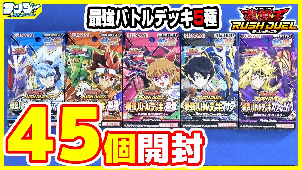 ユーディアス、遊飛、遊歩、マナブ、ズウィージョウのデッキがそれぞれ登場!!レジェンド5種類シークレットを狙って3人分45個開封!!当たれ激流葬!!