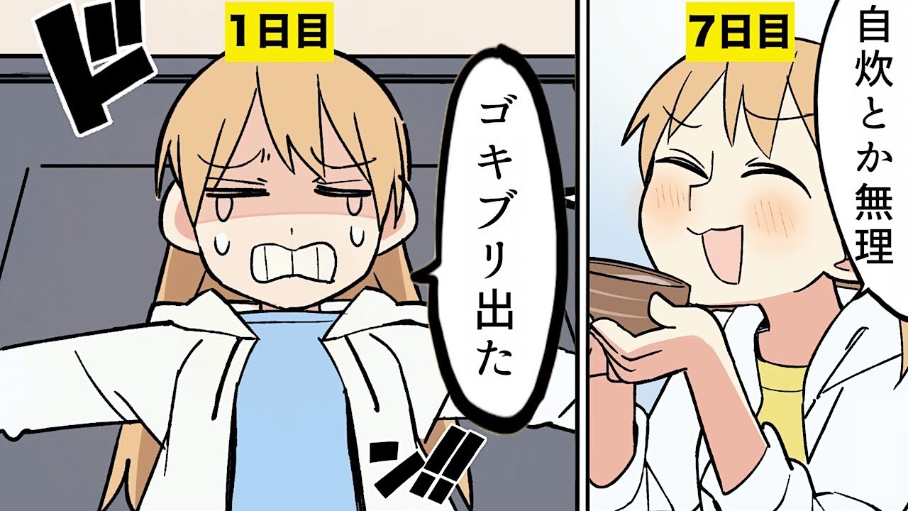 自炊無理・・。虫無理・・【漫画】一人暮らしを始めてわかったこと【マンガ動画】脚本/原作:永戸リョウ@denran1031 イラストレーター:ゆきひろゆき@solaneconeco #三姉妹シリーズの動画一覧はこちら #三姉妹シリーズ fermiFermiLabあかりアニメコタローは1人暮らしフェルミフェルミ研究所マンガリン一人一人暮らし三姉妹三姉妹シリーズ漫画衝撃雑学