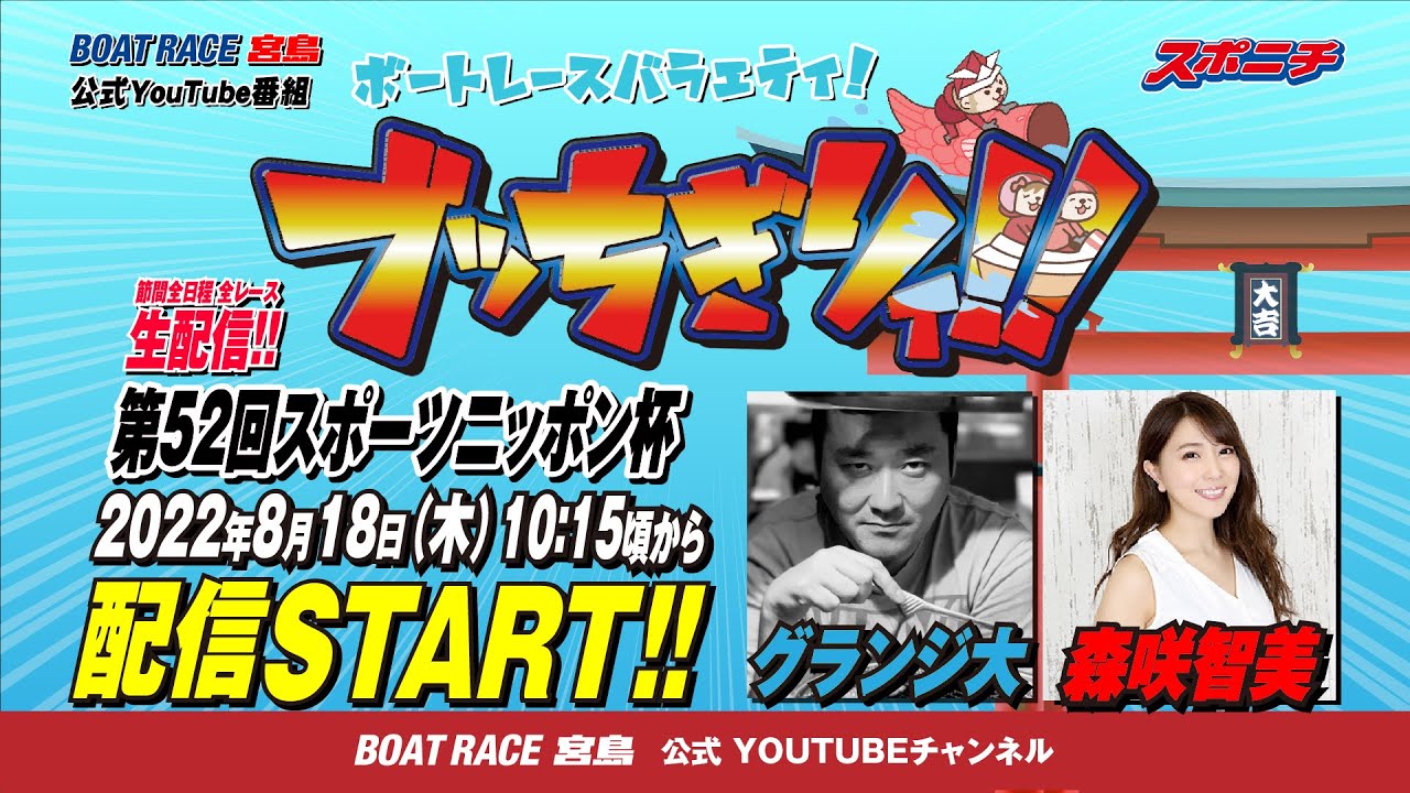 【ボートレース宮島 公式YouTube番組】 ボートレースバラエティ “ブッちぎりィ!!”【グランジ大&森咲智美】