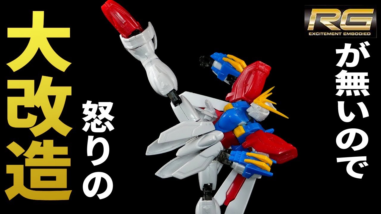 可動の資料としてRGゴッドガンダムを買えれば買おうかな、と近所のガンプラ売り場に立ち寄りましたが見つからず勝利を掴めなかったので、ガンダムベースオンラインで買った旧キット1/144ゴッドガンダムにGフレームを組み込んでガチ改造しました。