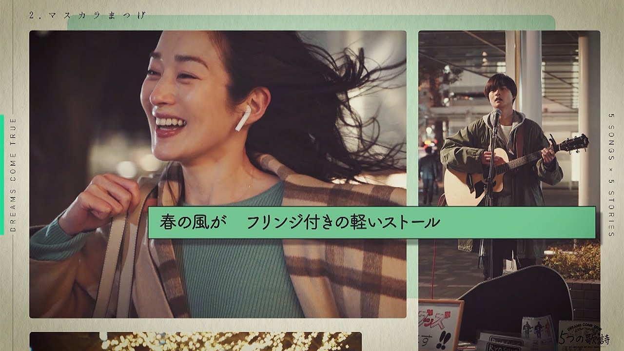 「5つの歌詩」は、「DREAMS COME TRUE」(ドリカム)が全面協力で展開されるドラマプロジェクトで、ドリカムの“歌詩”の世界観をオリジナルストーリーとして映像化。今回「空を読む」「マスカラまつげ」「TRUE, BABY TRUE.」「何度でも」の4曲と、このドラマ企画のために書き下ろされた「新曲」の計5曲がドラマ化される。
