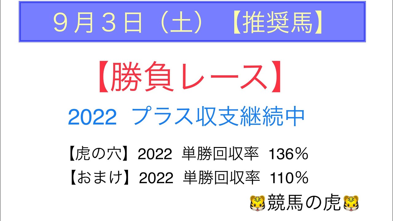 【9月3日(土) 競馬予想】【平場予想】【推奨馬】【勝負レース】【穴馬】