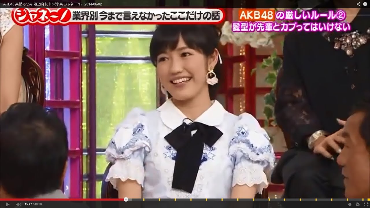 番組ジャネーノの業界別ここだけの話で、AKBの渡辺麻友らが恋愛以外にも厳しいルールがある話を明かします。「研究生の間は〇〇を変えてはいけない」「高橋みなみを〇〇に誘ってはいけない」など。