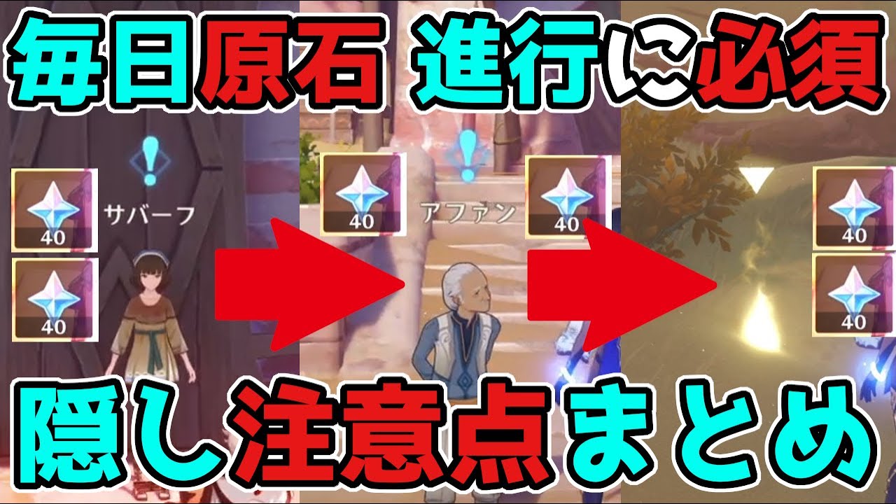 原神げんしん最新バージョンVer3.1のスメールにて、3.1で毎日「原石」貰う為に必須の知識!隠し要素と注意点まとめ!についてご紹介した動画になります。或る人への薔薇・追放者・ゴールデンローズの種。旅人の皆さんにガチャでセノ,ニィロウ,キャンディス,ティナリ,鍾離(しょうり)甘雨(かんう)宵宮(ヨイミヤ)万葉(カズハ)夜蘭(イェラン)神里綾華(かみさとあやか)神里綾人ウェンティ雷電将軍と珊瑚宮心海(サンゴノミヤココミ)八重神子(やえみこ)申鶴(しんかく)魈(しょう)荒瀧一斗(あらたきいっと),アルベド,エウルア,胡桃(フータオ)とタルタリヤが出ますように。他の動画などでは世界任務アチーブメント豪華な宝箱原石モラ育成素材天賦突破素材貴重な宝箱冒険経験値聖遺物稲妻評判経験値などの入手方法などもご紹介しています。このチャンネルではリーク画像や情報を扱っていません。考察情報なども公式情報を元に楽しむ内容となっています。