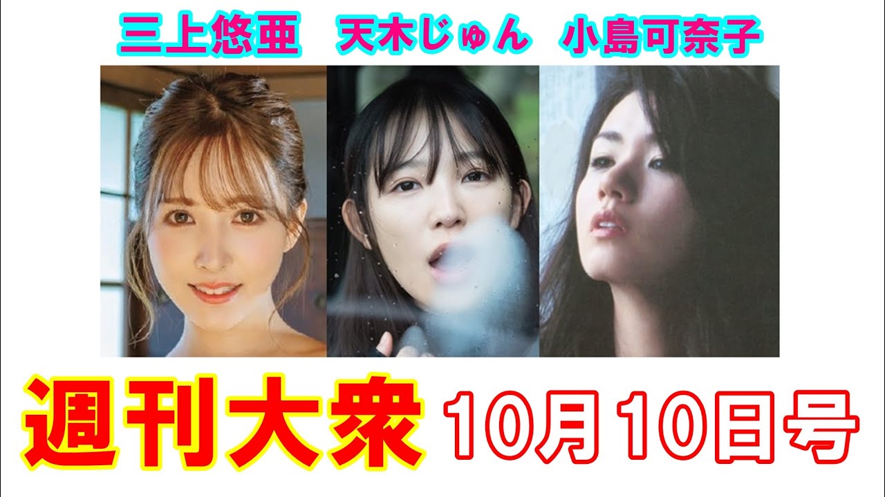 国民的アイドルと半年間、一緒に過ごせる記念品。天木じゅんの写真集から未公開カットを蔵出し放出。他にも小島可奈子の未公開ヌードも! 週刊大衆最新号⇒https://amzn.to/3ReINQV チャンネル登録はコチラ⇒https://bit.ly/3ficb9k #週刊大衆 #大衆セクシー #三上悠亜 #小島可奈子#天木じゅん UC_mNNfAp1SXaVokunRN6zXgセクシー三上悠亜双葉社天木じゅん小島可奈子日刊大衆週刊大衆