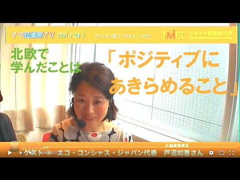 ママ起業家TVみらい第10回目は、北欧ツアーの主催や北欧スタイルの考え方や生き方などを日本に紹介しているエコ・コンシャス・ジャパン代表の戸沼如恵さんを南青山のママ大サロンにお迎えしてLIVEでお話しを伺いました。 ▽ママ起業家大学公式サイト http://j-mec.com ▽エコ・コンシャス・ジャパンのHP http://www.e-c-japan.co.jp Miraiアップエコエレベータートークカウンセラーコーチコピーコピーライティングコピーライトコンサルコンサルタントコンセプトサロネーゼサロンスクールセールストークセミナーチラシノウハウビジネスフィンランドプチ起業フライヤーフリーランスプロフィールフロフィール写真マーケティングママママ企業ママ企業家ママ大ママ起業ママ起業家ママ起業手帳ミライメニューやりがいライフスタイルレシピレバレッジワークショップ事業事業化事業家事業計画事業計画書仕事作り方保育働く儲かる動画北欧原価収入収益名刺在宅報酬夢女性好き子ども子供子育て実現家族得意戸沼戸沼如恵支援教室方法方法論日本ママ起業家大学未来決算独立稲垣実花稼ぐ簡単粗利自分らしく自宅自宅サロン自宅教室自己紹介術見込客計画赤ちゃん起業起業家達成開業開業支援集客黒字化