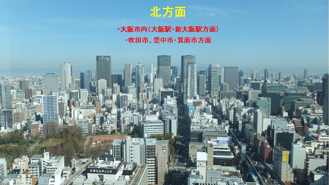 大阪市西区(本町駅近く)に立地しているオリックス本町ビルの28階展望テラスから眺めた大阪市街地(360度のパノラマ)を写真と動画で紹介しています。