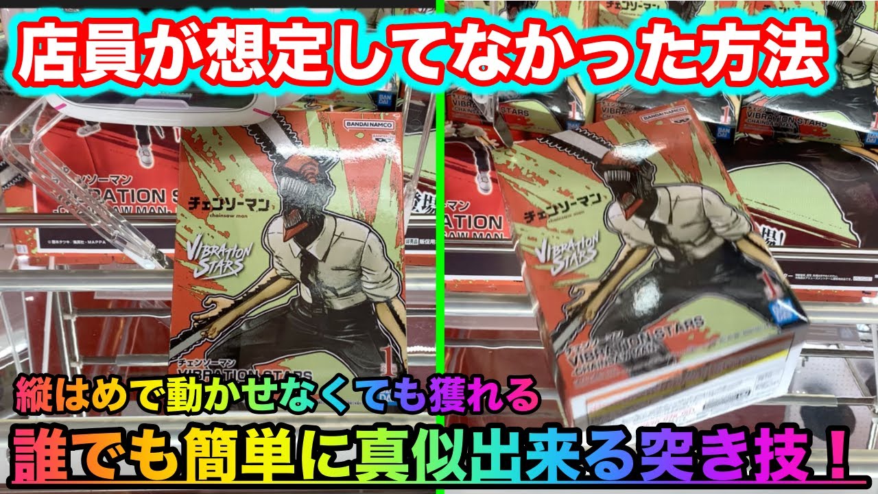 今回は大人気のチェンソーマンのフィギュアです。初日にプレイしてきましたがやはり難しかったです。設定というより景品の癖が強くて難易度が上がっていた感じがしました。久しぶりに為す術もないレベルで心が折れかかっていましたが、救いの1手で沼から脱出する事が出来ました。皆さんもこの動画を参考に是非沼った時は試してみて下さい!