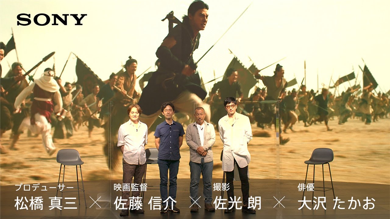 映画『キングダム2 遥かなる大地へ』を作り上げた、プロデューサー 松橋真三氏、映画監督 佐藤信介氏、撮影 佐光朗氏、王騎役の大沢たかおさんによる特別対談動画。