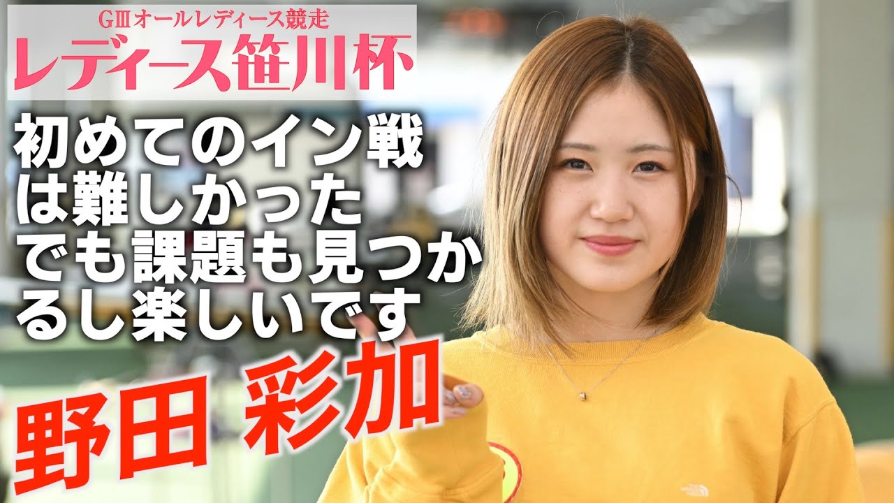 ボートレースとこなめのGⅢ「オールレディース競走レディース笹川杯」3日目、4Rで2着の野田 彩加。今節から初のイン戦を戦う野田。初日の悔しいスタートなどもあり、2コースから2着だった今日も本人からは反省の弁が。しかし「いろいろ課題も見つかるし楽しいです」とこの悔しさをバネに、大きな成長に繋げてくれるはずだ。