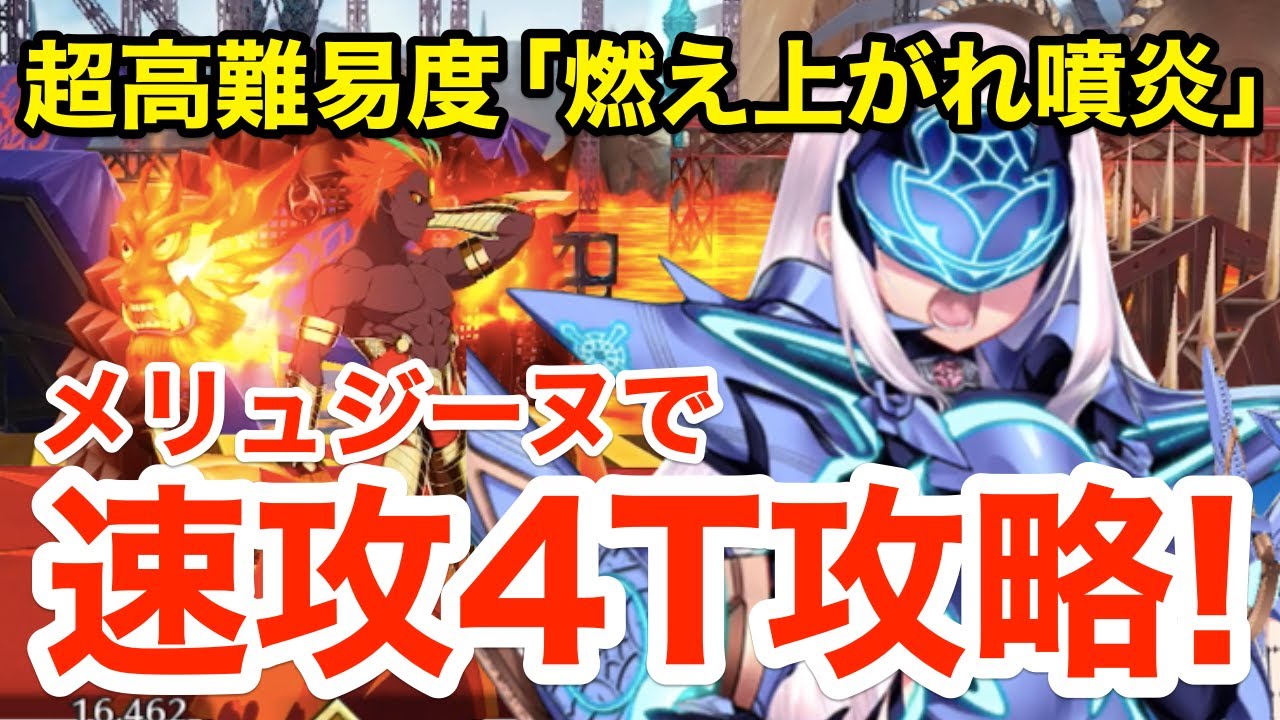 カルデア妖精騎士杯イベントの超高難易度「燃え上がれ憤炎」をメリュジーヌで4ターン攻略。