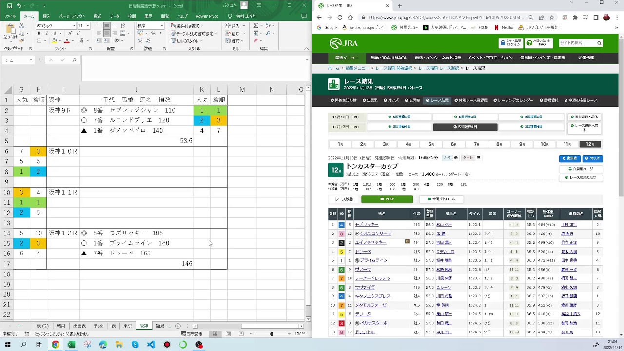 今日の中央競馬の予想と結果です
