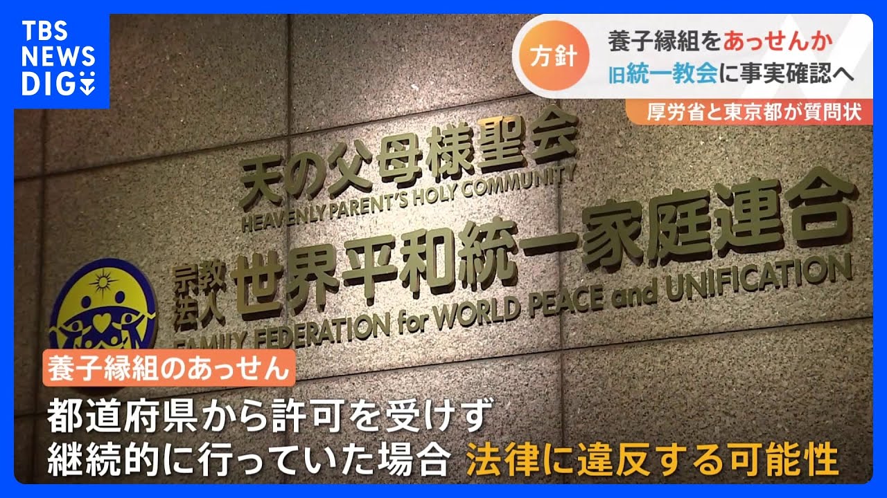 加藤厚労大臣は旧統一教会が都道府県からの許可を受けずに、養子縁組のあっせんを行っていた可能性があるとして、近く教団側に事実関係の確認を行うことを検討していると明かしました。