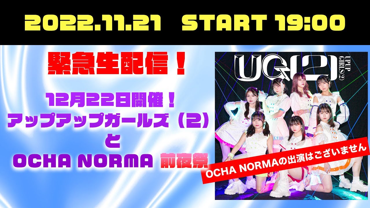 「12月22日開催!アップアップガールズ(2)とOCHA NORMA前夜祭」の模様を生配信します!