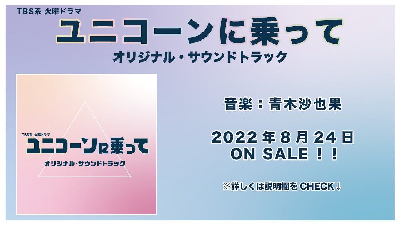 TBS系 火曜ドラマ「ユニコーンに乗って」オリジナル・サウンドトラックが8月24日(水)に発売!!