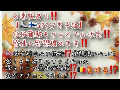 ※速報あり‼️【フィンランドGP22/男子編】①佐藤駿もファイナル決定‼️皆様の感想②有料なのに微妙⁉️③解説について④10年ぶりのファイナルの⑤マリニン選手が怪我⁉️⑥ジオブロック外れた⁉️ #フィンランド大会 #佐藤駿 #壷井達也 #宇野昌磨 #三浦佳生 #羽生結弦 AZ Screen Recorder宇野昌磨
