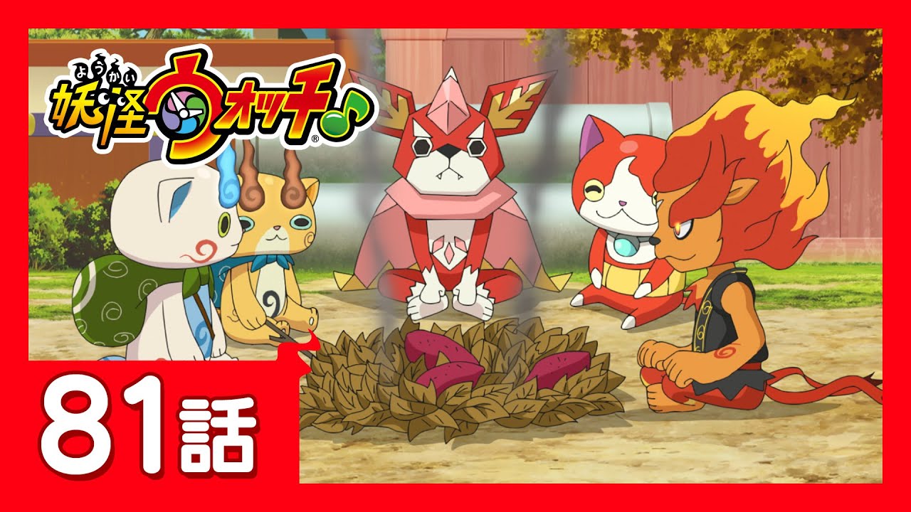 ジバニャンやコマさん達が、焚火にお芋を入れて、美味しい焼き芋が完成するのを楽しみに待っていたその時、何者かが突然現れて、焼き芋を全部奪ってしまった。