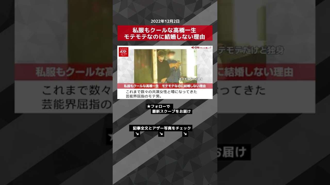 【ショート動画】私服もクールな高橋一生 モテモテなのに結婚しない理由 NEWSポストセブン #shorts
